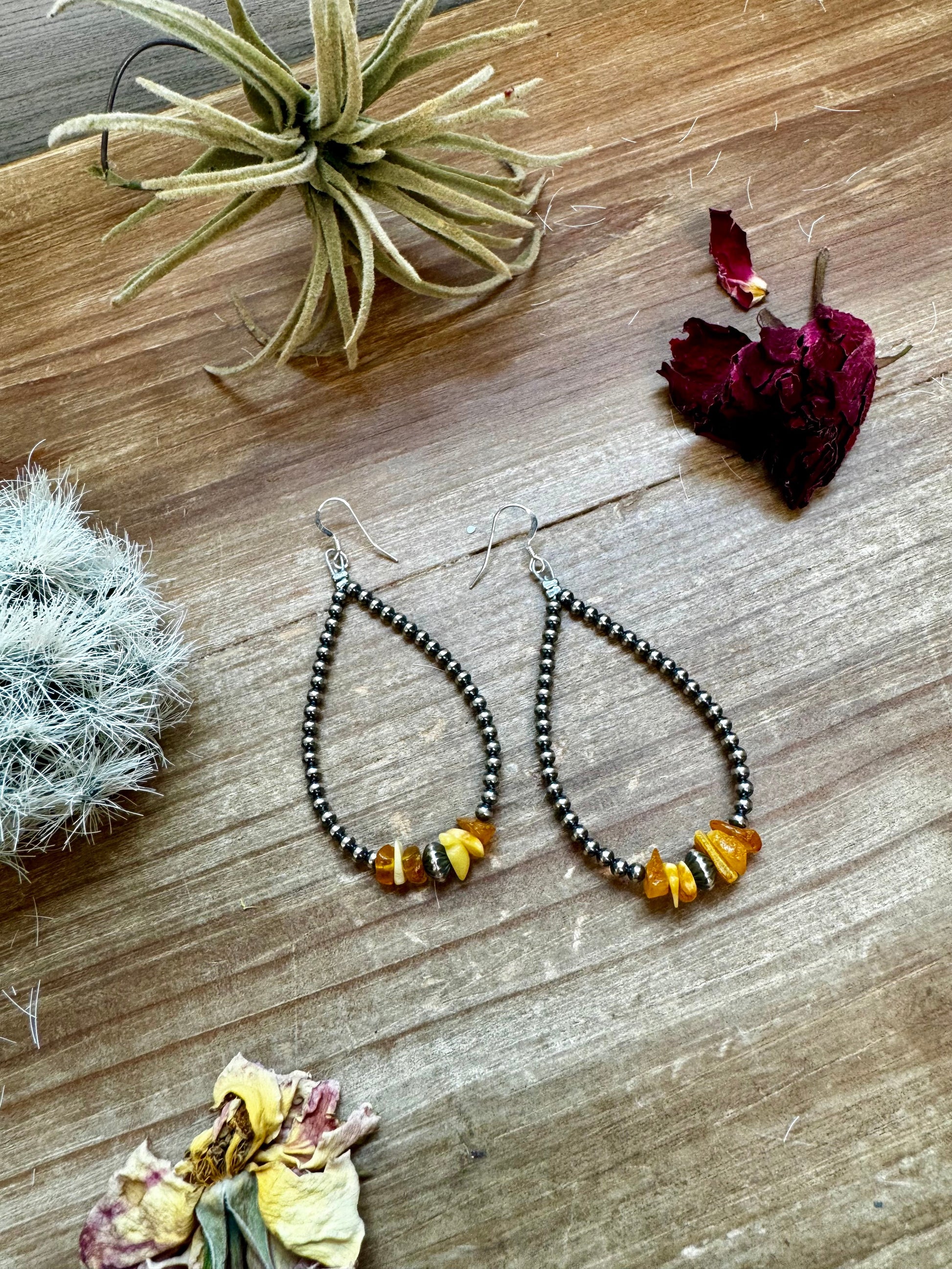 3 mm sterling silver pearls earrings teardrop with yellow amber