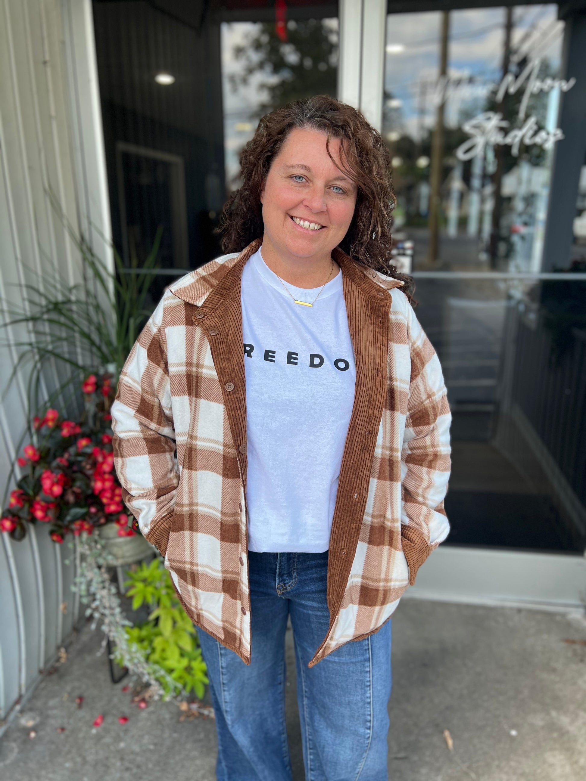 Camel Corduroy Reversible Plaid Shacket
