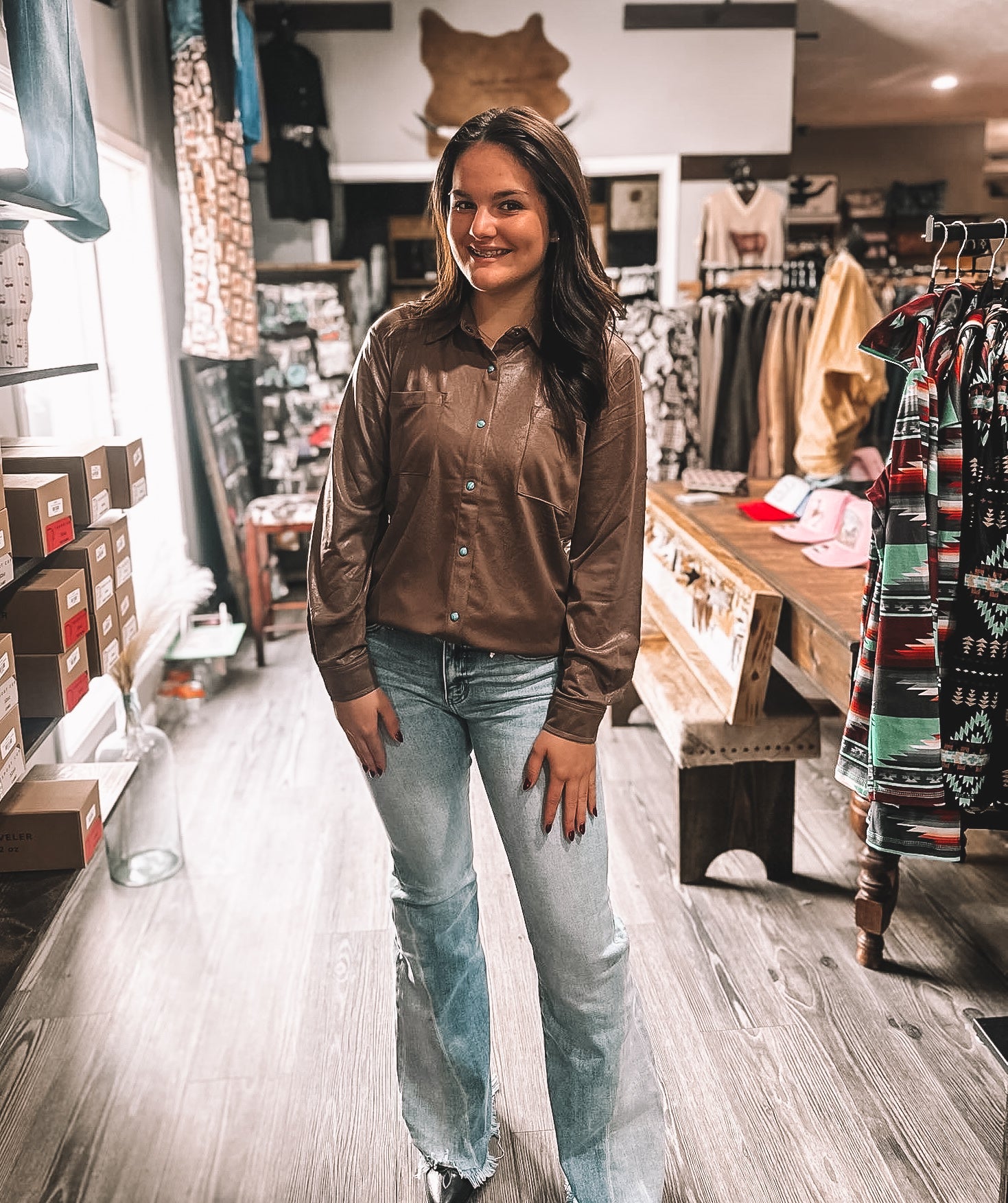 Chocolate Leather Lux Pearl Snap