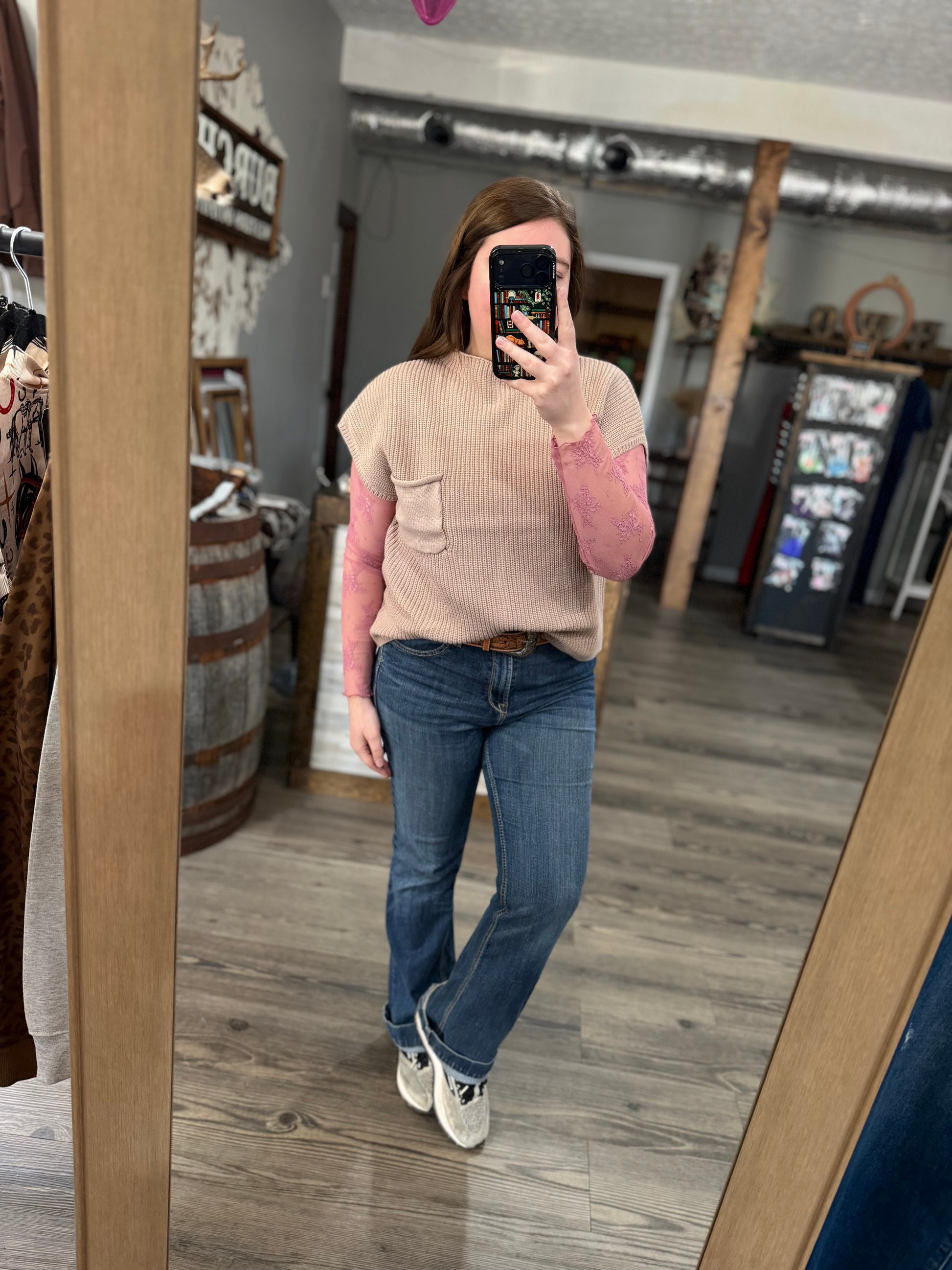 Light Mocha Short Sleeve Thick Sweater
