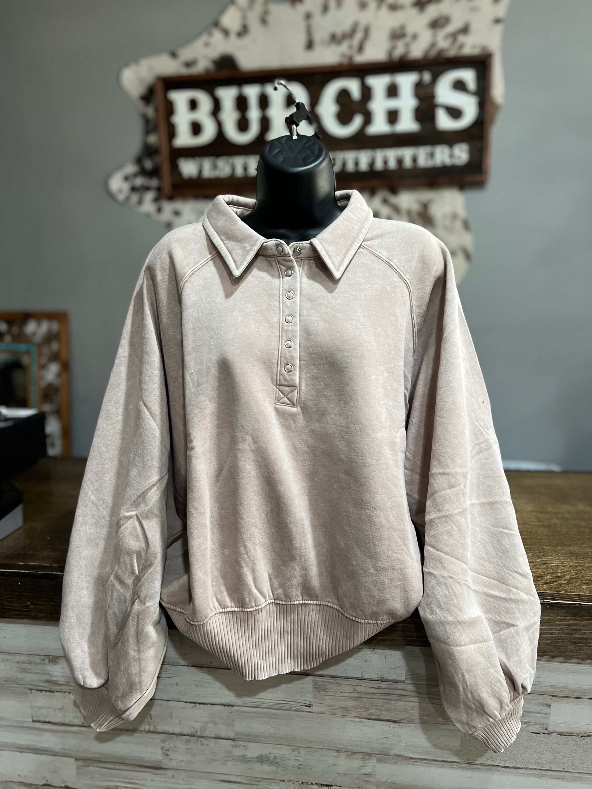 Mineral Wash Button Up Pullover *Buckskin