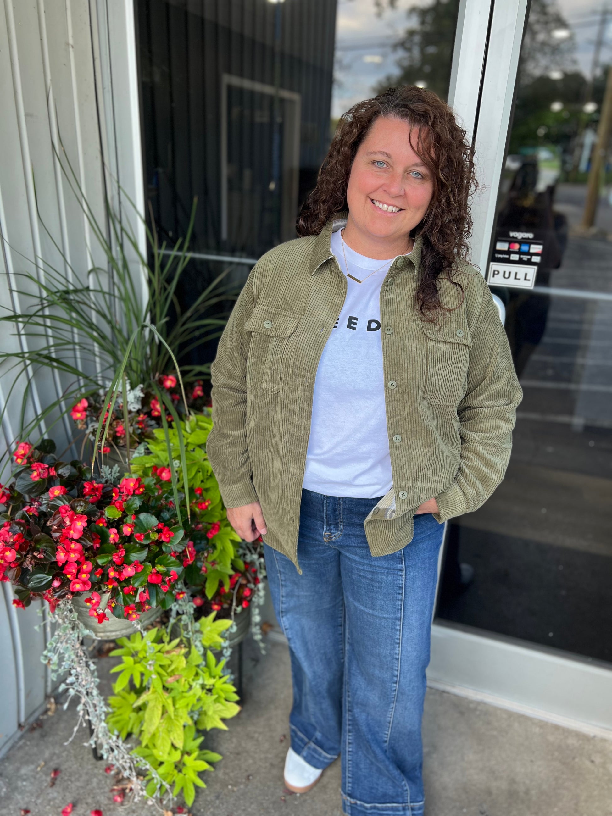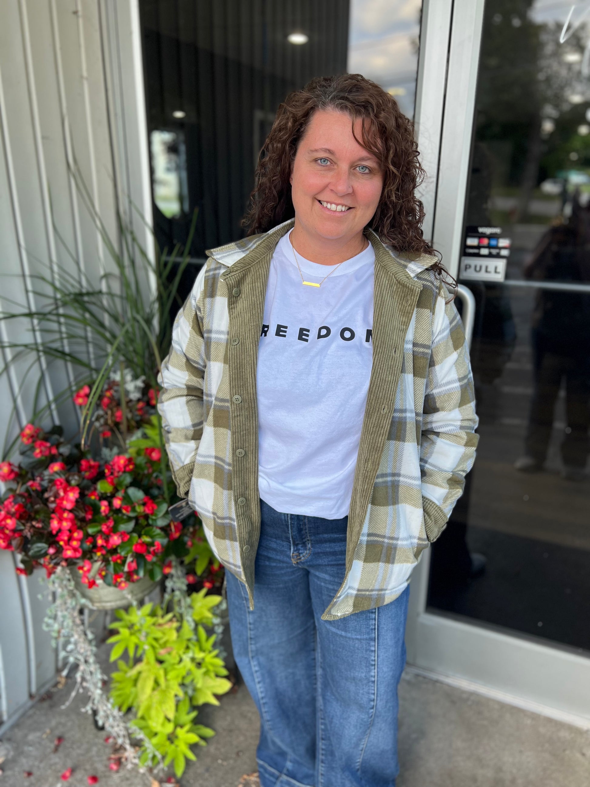 Olive Corduroy Reversible Plaid Shacket